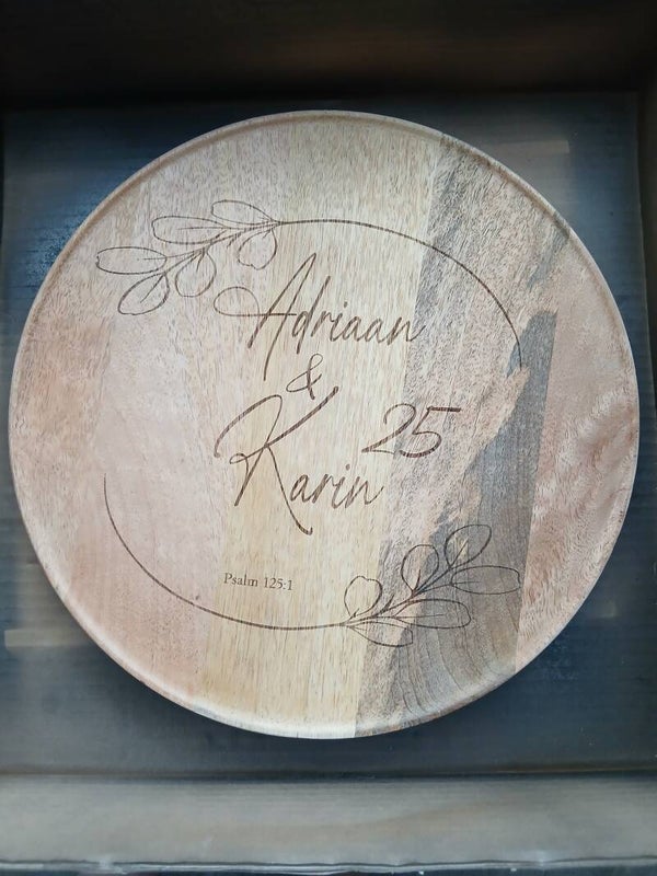 "Ontwerp jouw eigen unieke borrelplank. Personaliseer de gehele tekst naar keuze en maak van elke borrel een speciale gelegenheid. Of het nu gaat om een familienaam, een speciale boodschap of een favoriet citaat, onze borrelplank biedt een persoonlijke en stijlvolle touch aan elk feestje of gezellig samenzijn. Creëer een blijvende herinnering en geef een gepersonaliseerde borrelplank cadeau aan vrienden of familie.